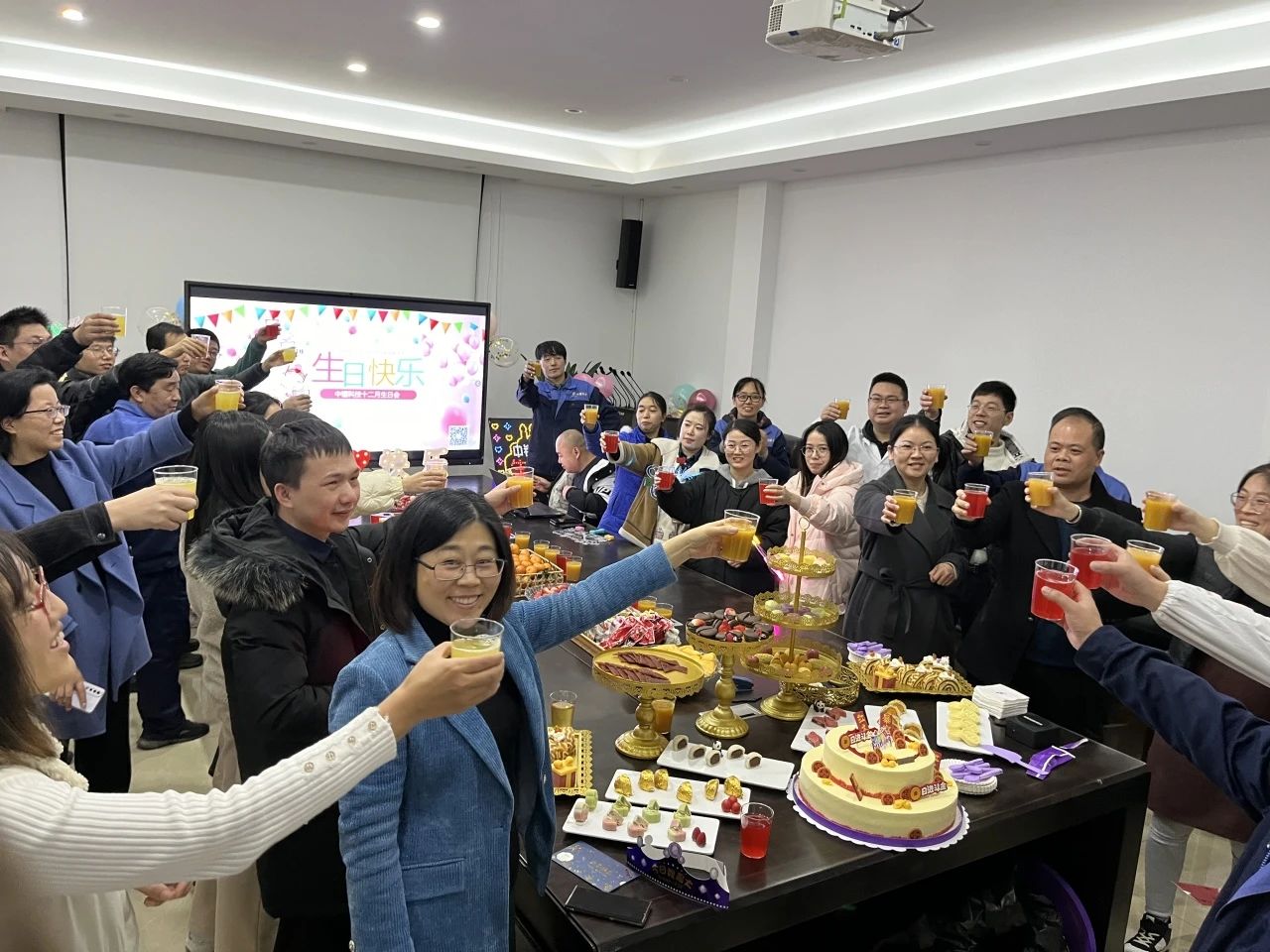 公司坚持每个月为员工举办集体生日会,体现着对员工的关爱和重视,通过集体生日会,让大家更好融入中镭科技大家庭,更有归属感和团队意识,在生日会上放松心情,促进情感交流,让大家充分感受到公司充满爱的企业文化,感受在中镭科技工作的幸福与快乐!
